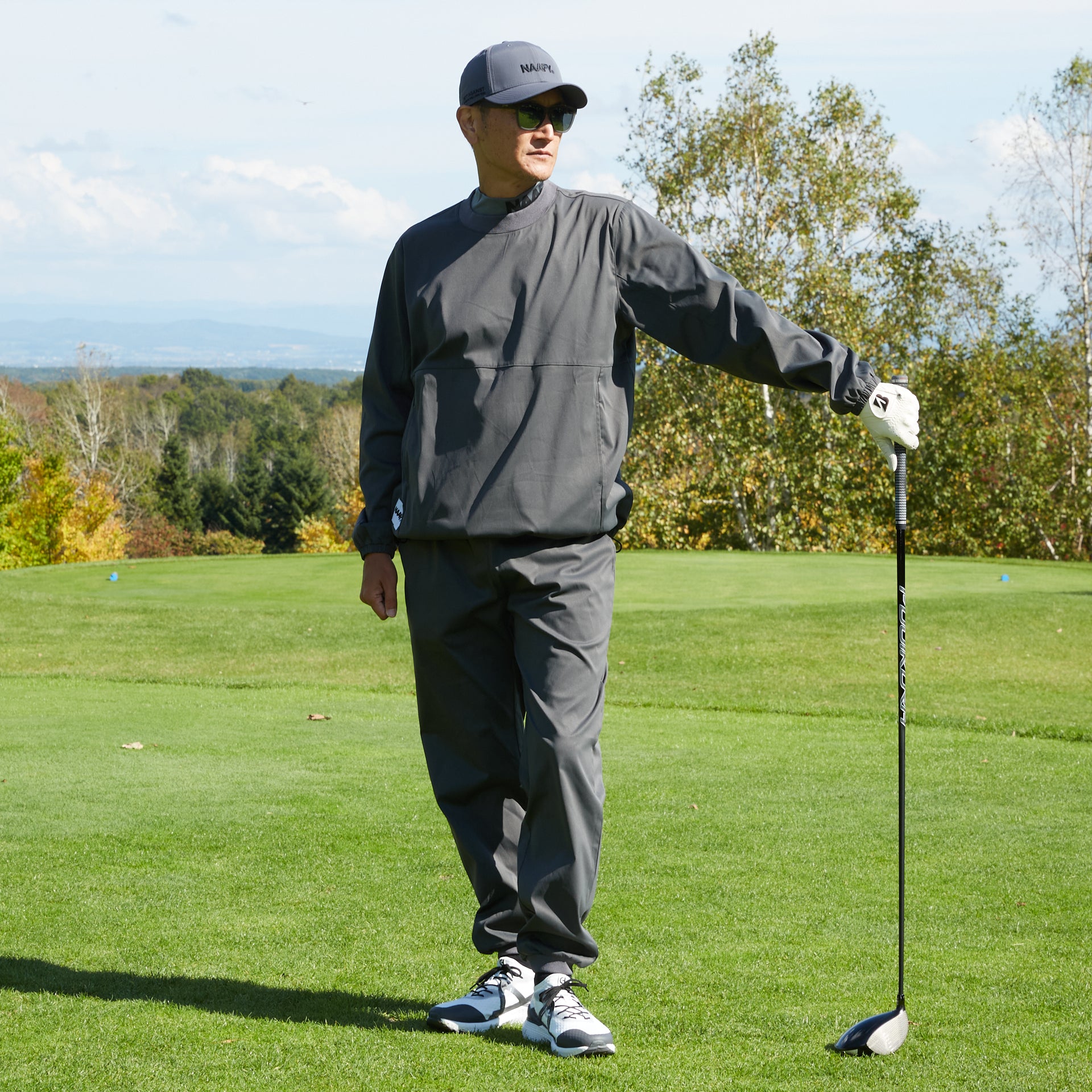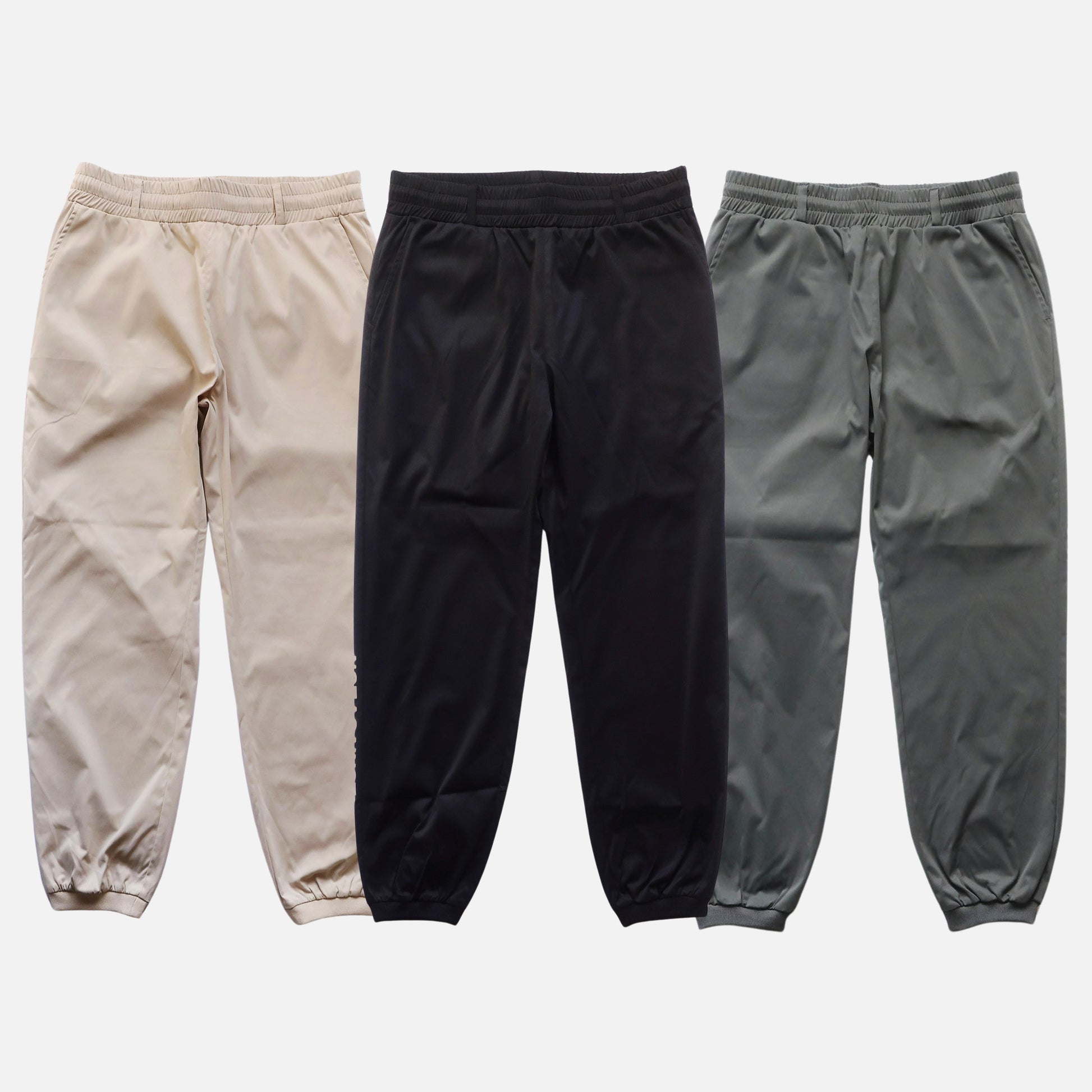 Water-repellent stretch long pants in the classic nylon stretch pant shape.