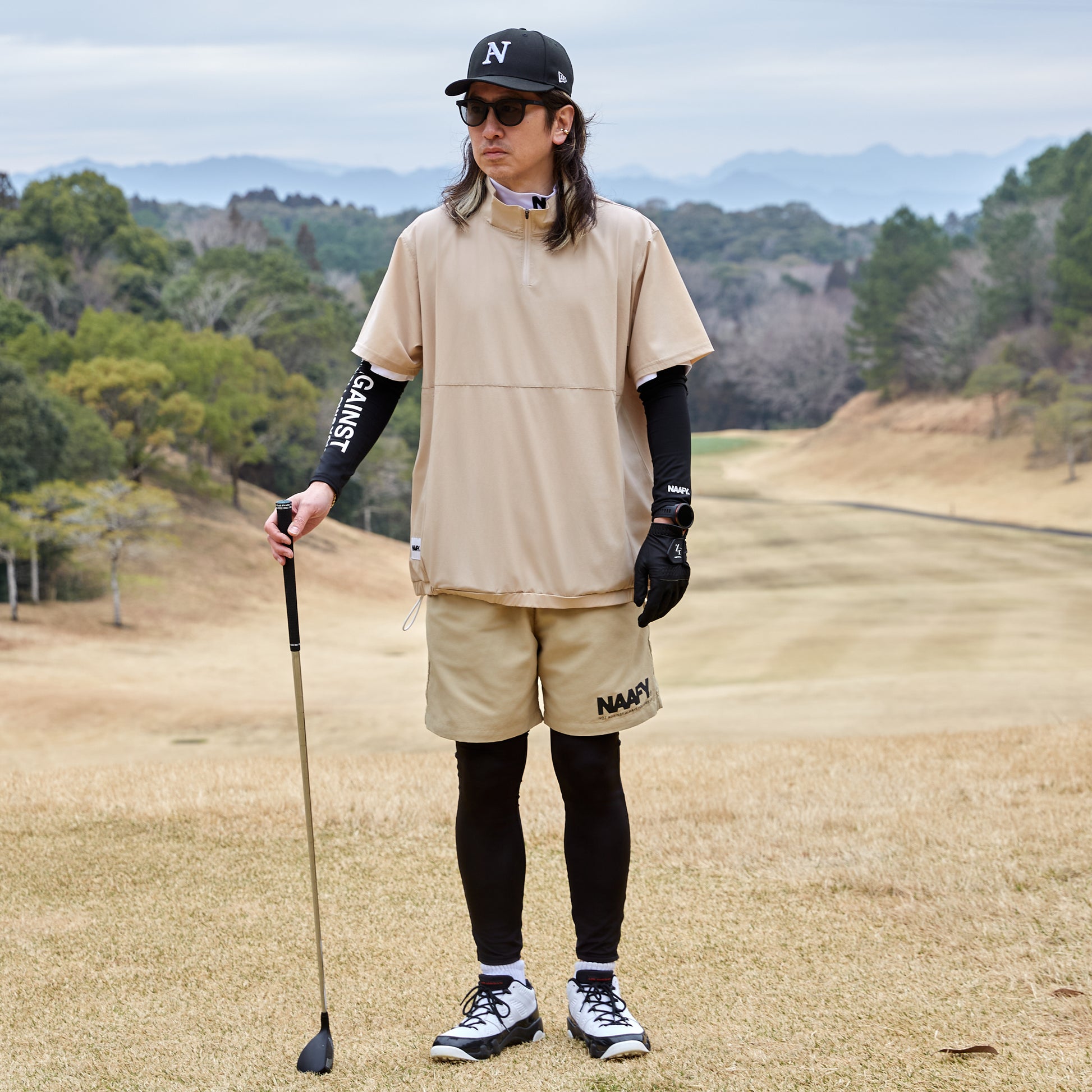 NAAFY Half Zip Short Sleeve Piste Beige Check