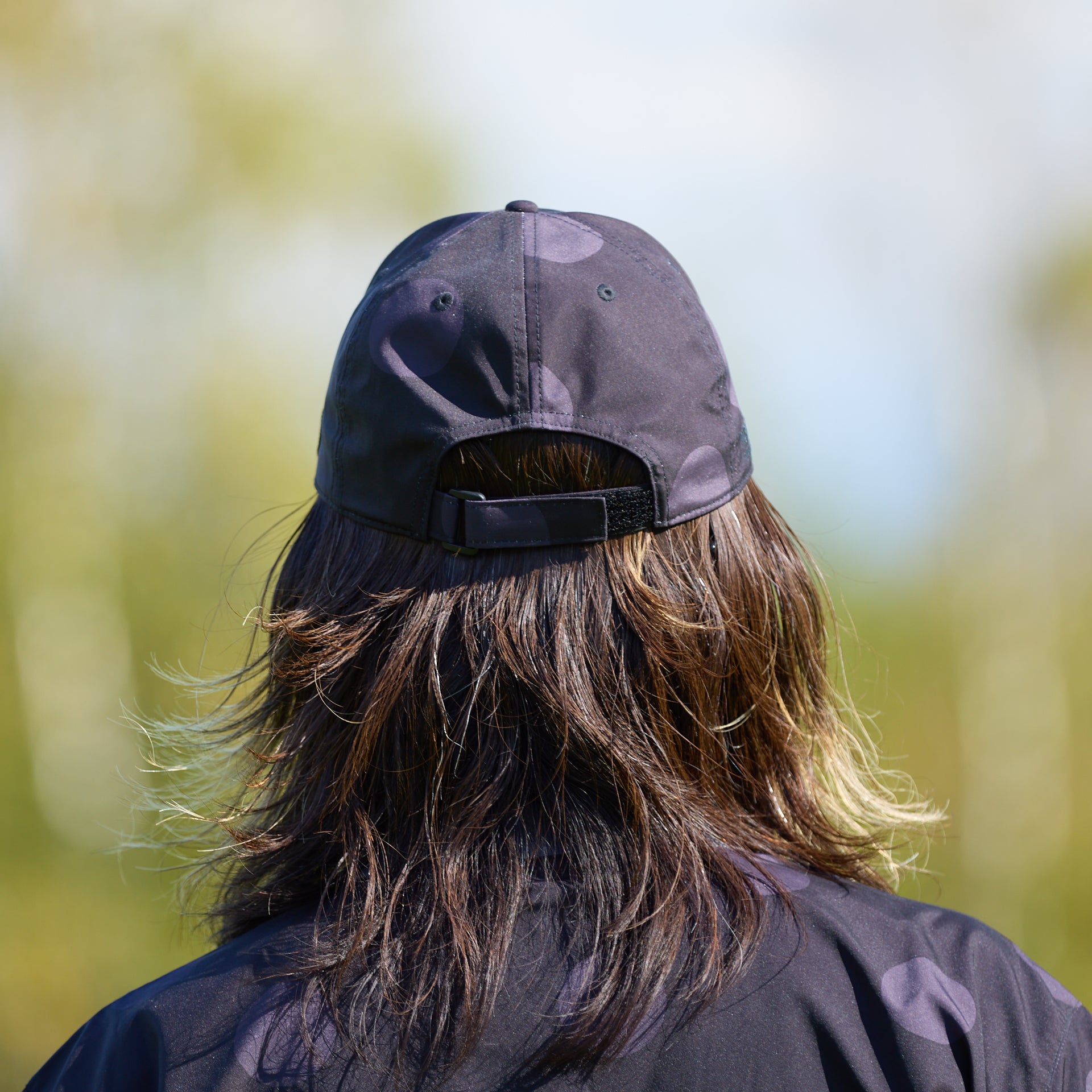 ドット柄のナイロンキャップ。