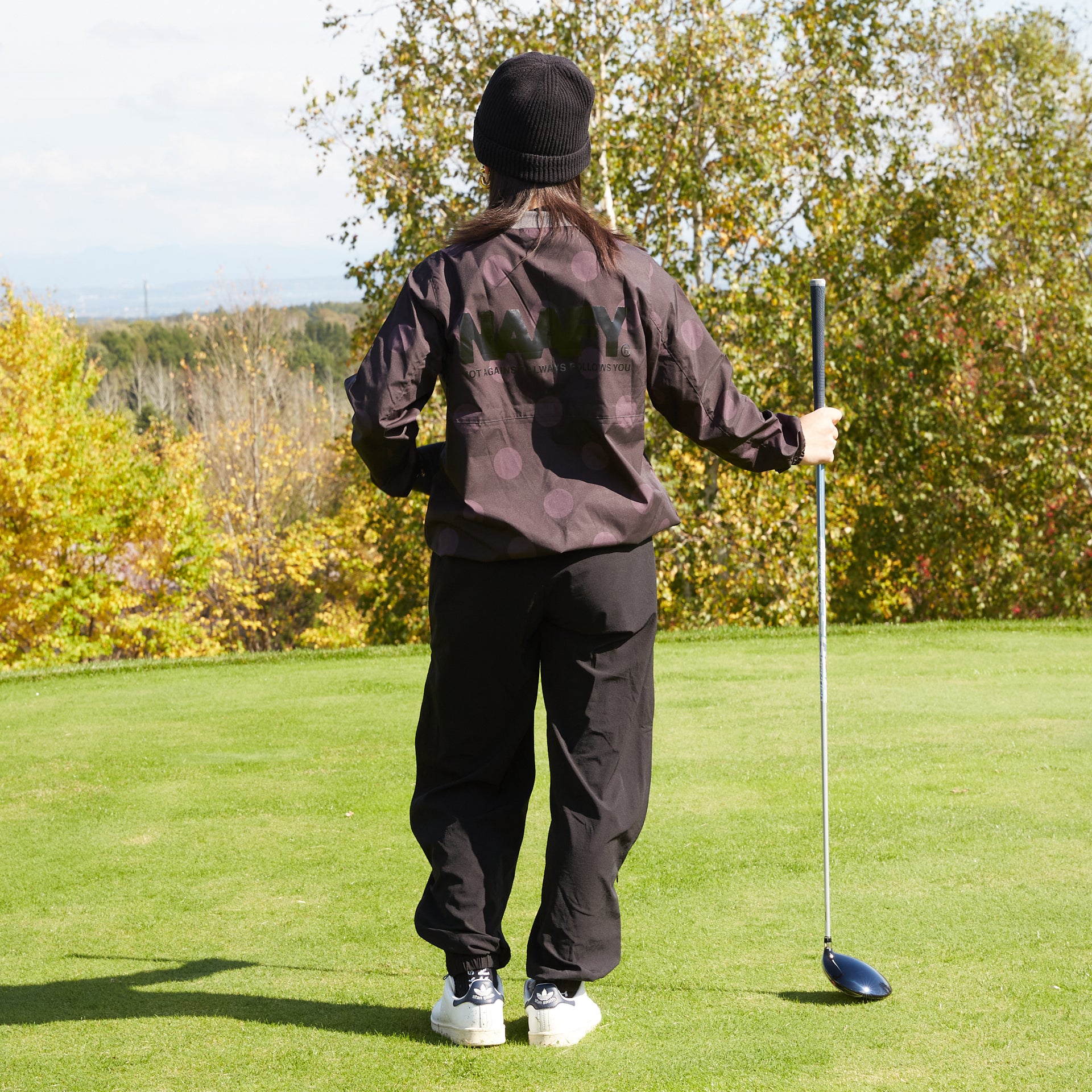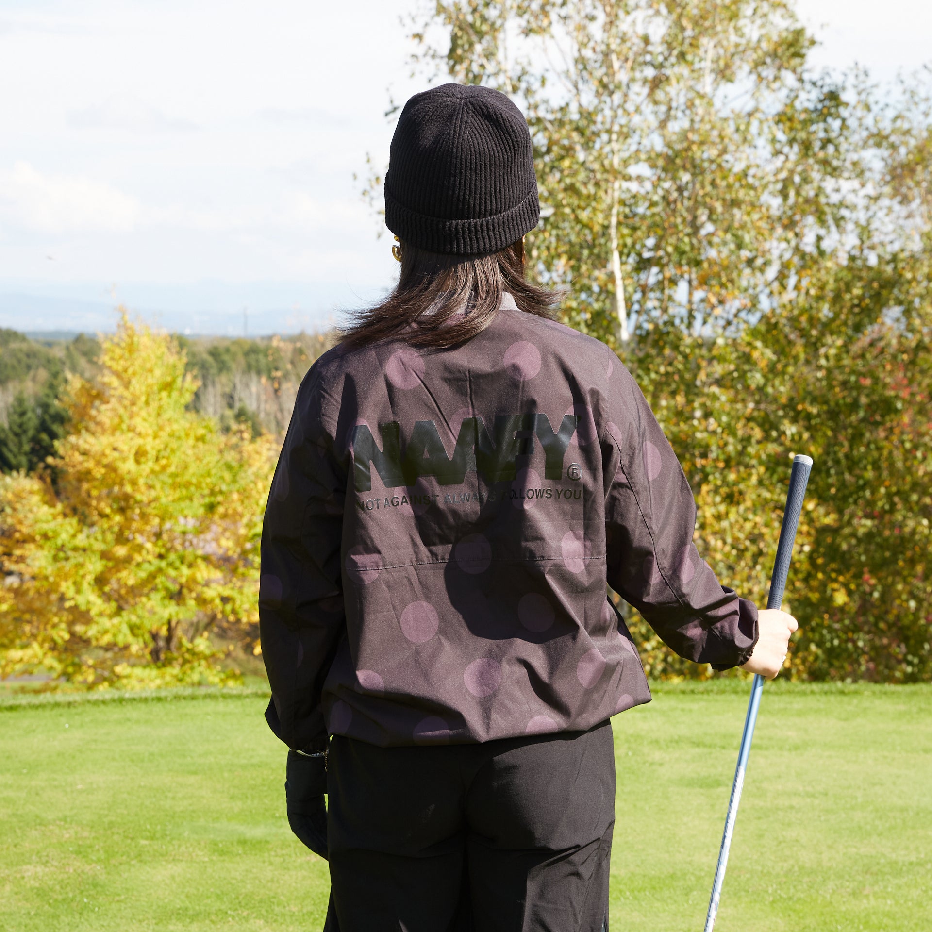 ブラック地にダークグレーのドット柄を配置しPOPになりがちなドット柄をシックに落とし込んでいます。