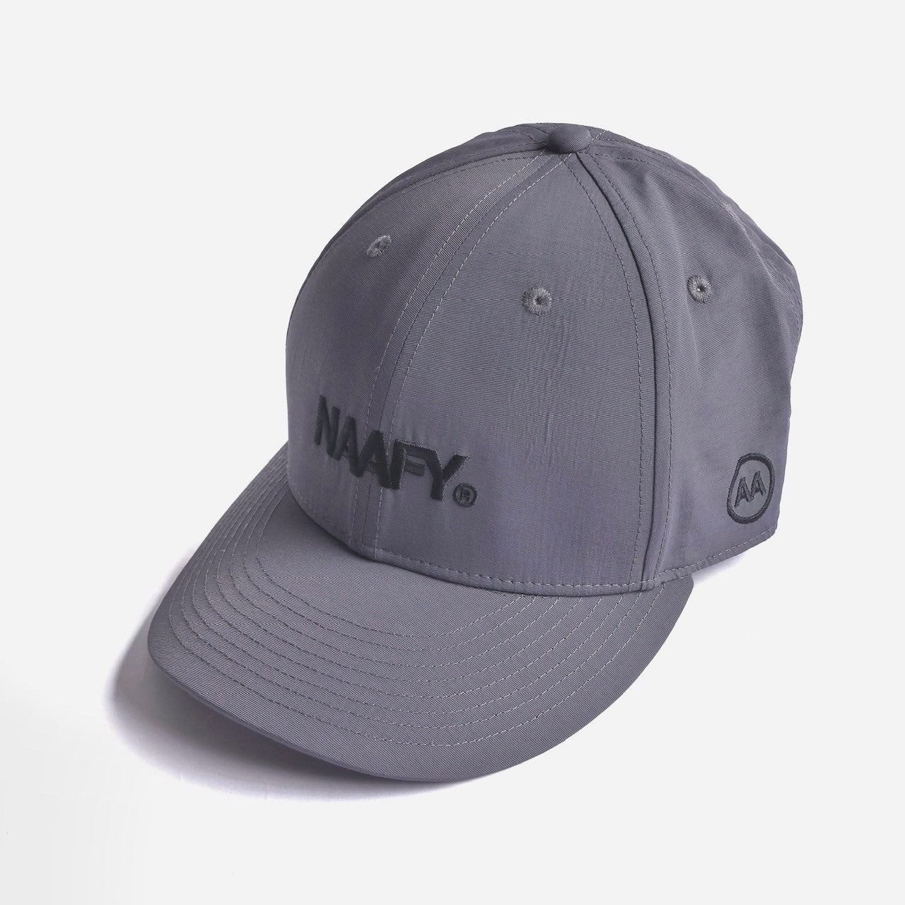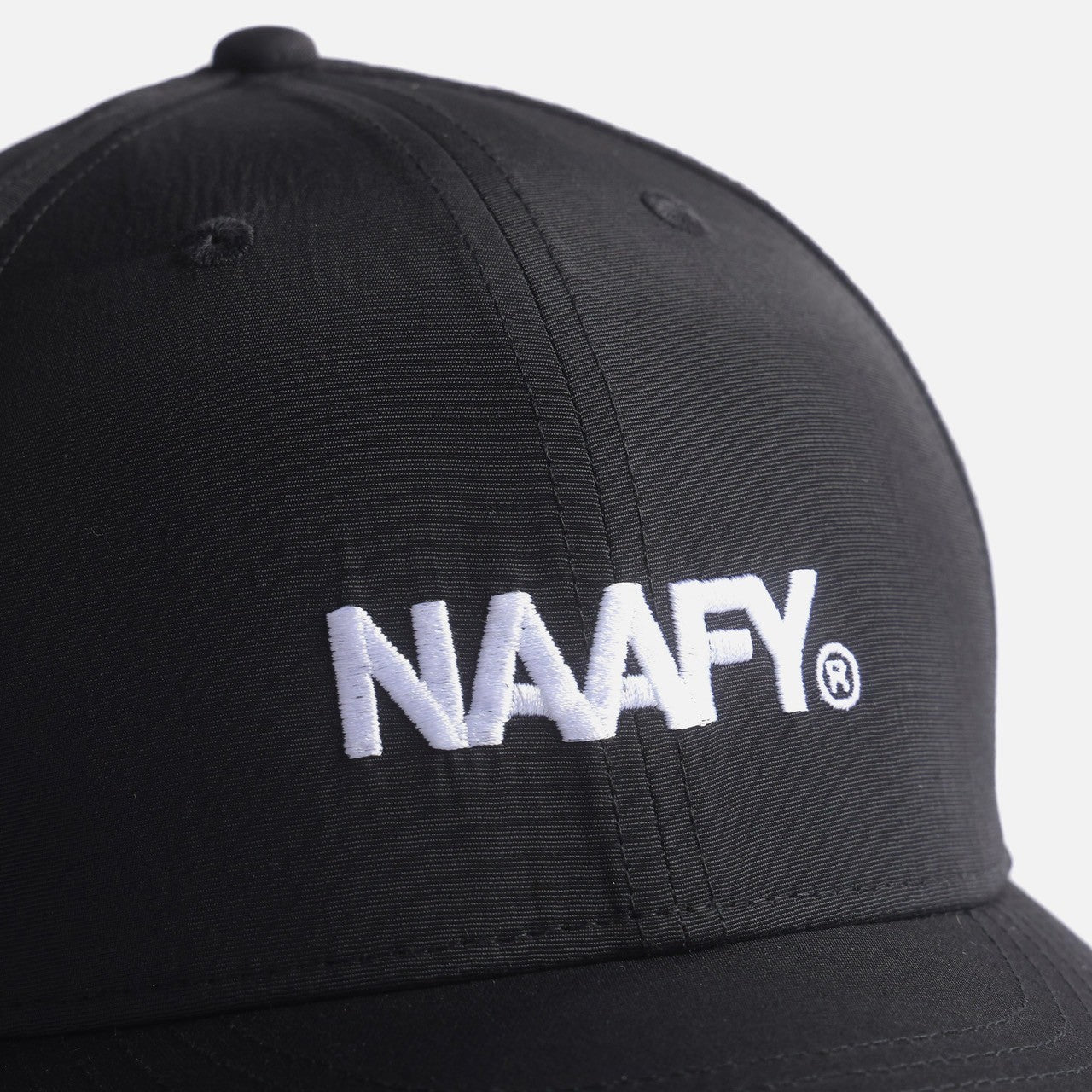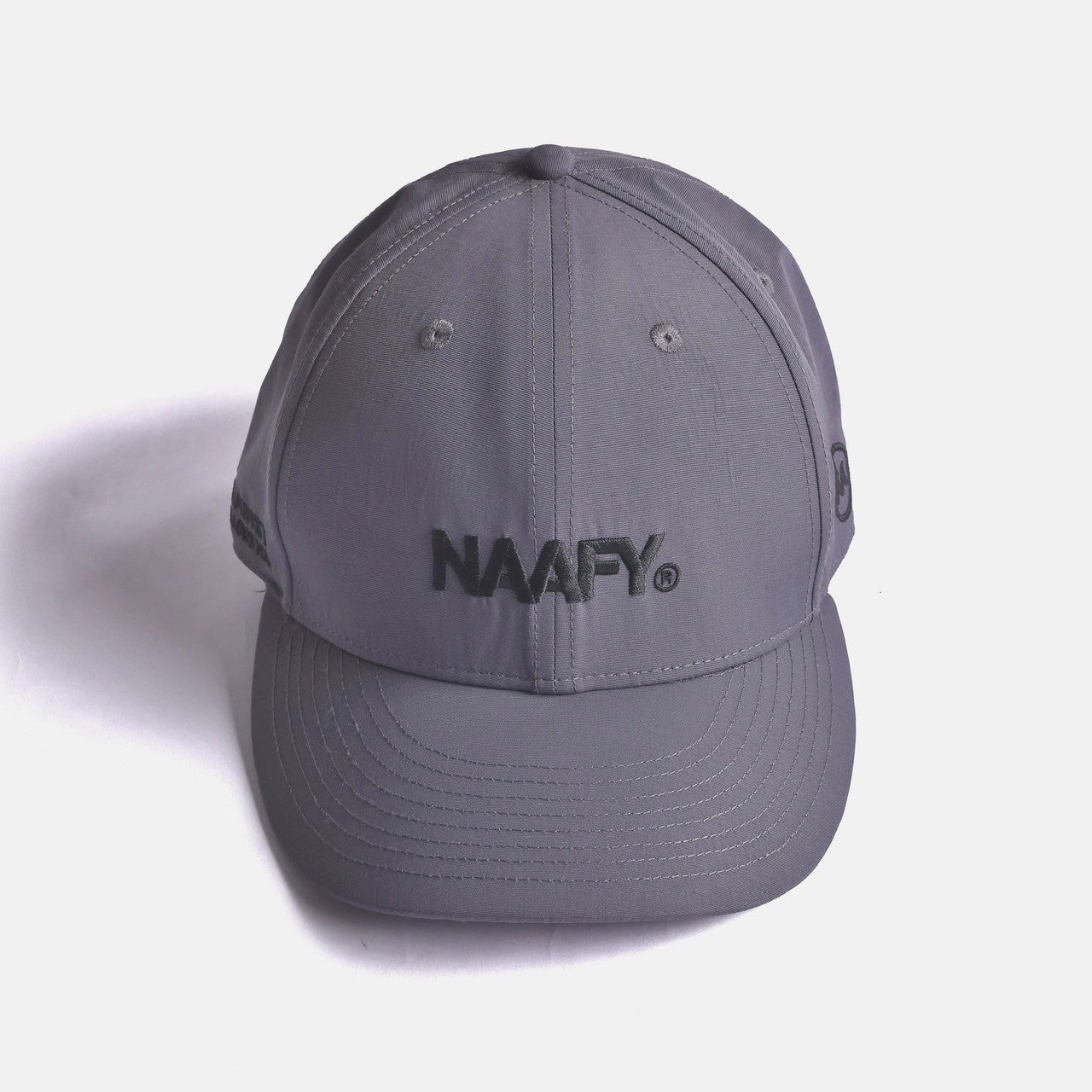 フロントに刺繍でNAAFYロゴを配置したナイロンキャップ。