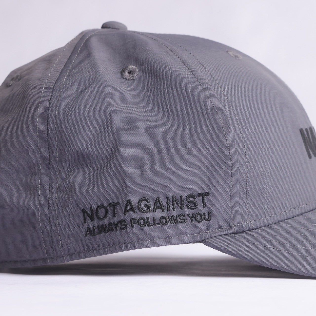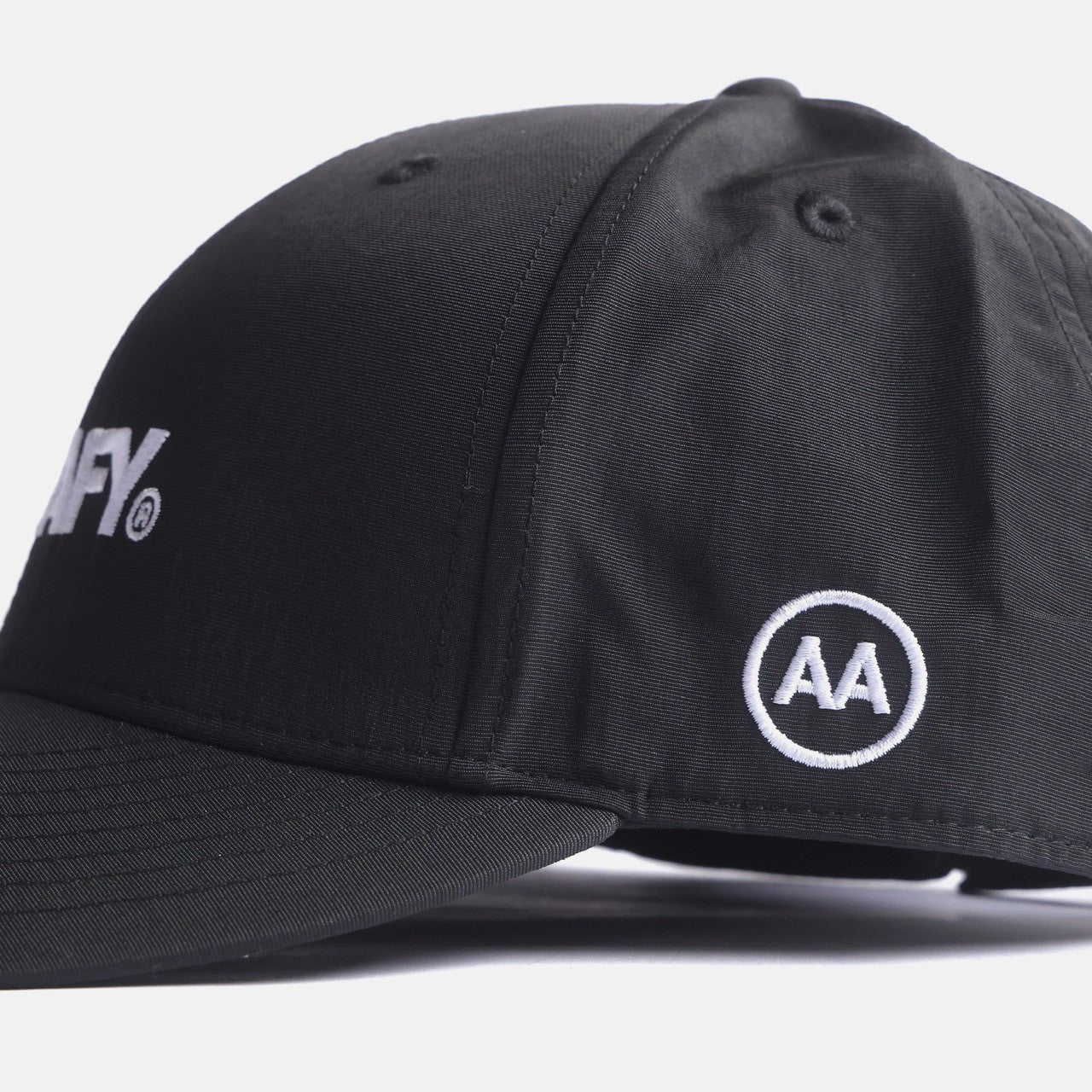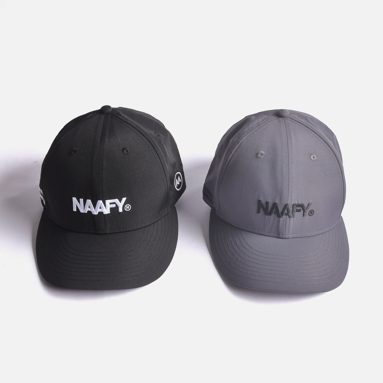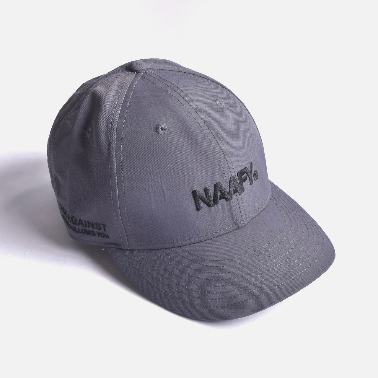 フロントに刺繍でNAAFYロゴを配置したナイロンキャップ。