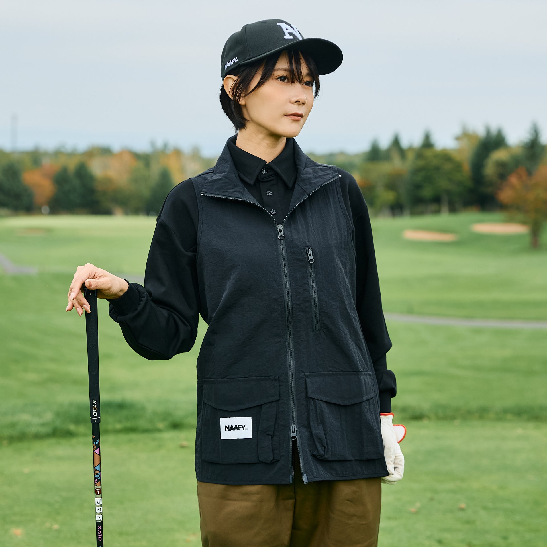 大容量のポケット付属で、ボールやティーなどの持ち運びにも便利。