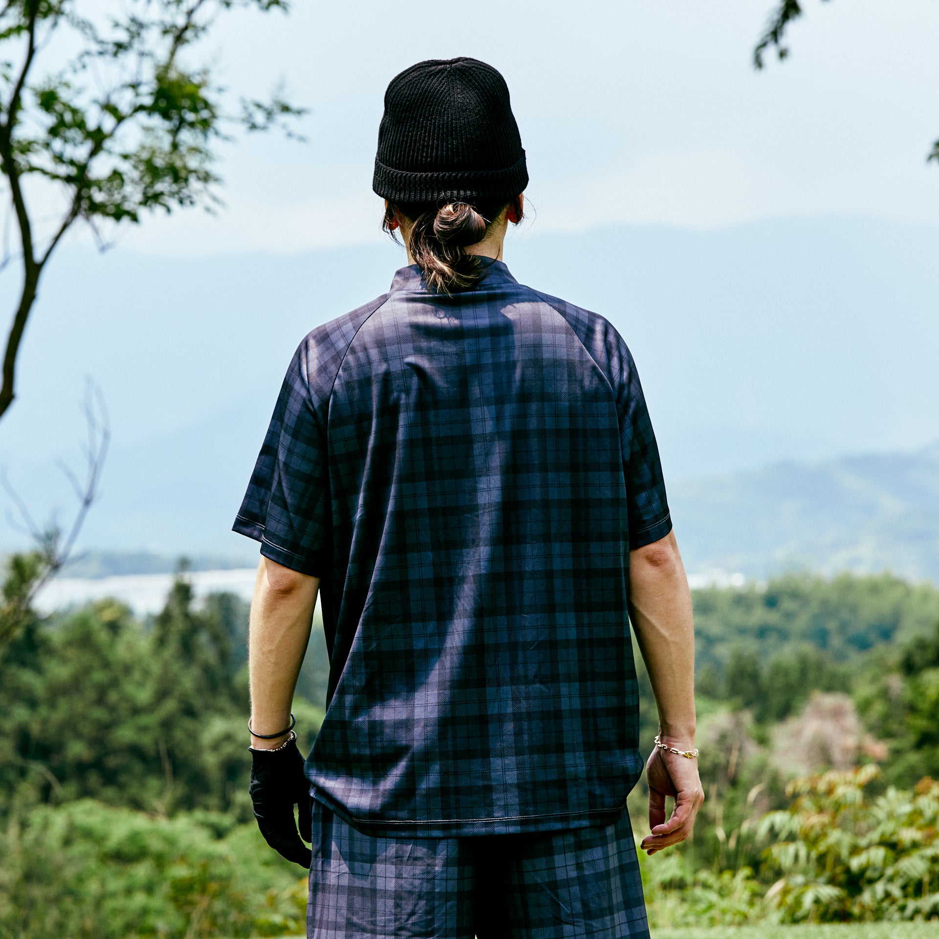 PLAID S/S MOCKNECK