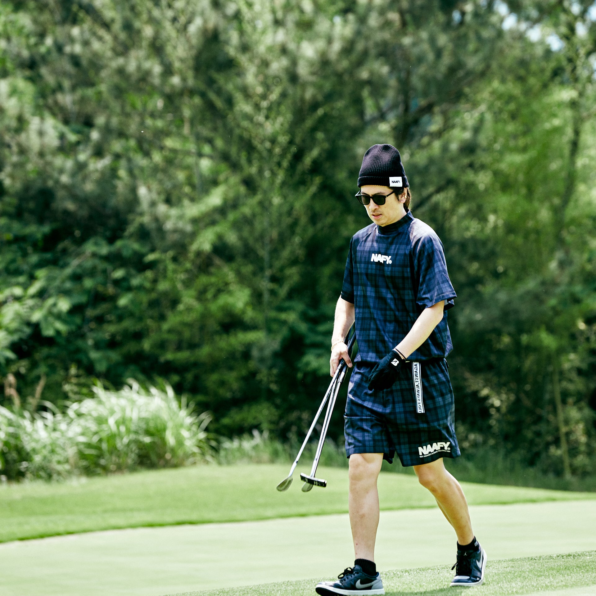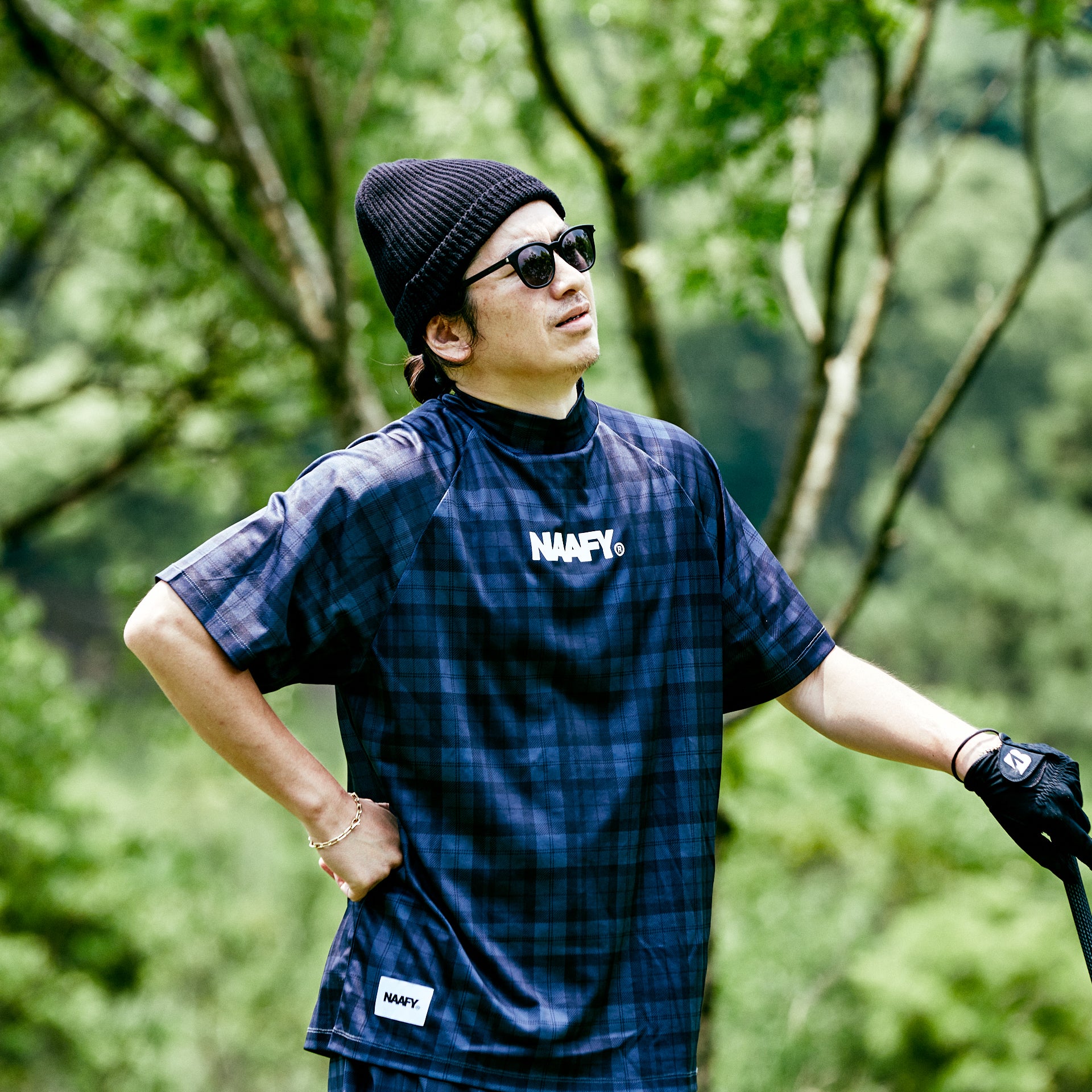 前面にはシンプルに右下に織りネームのみで胸部分にNAAFYロゴをプリント。